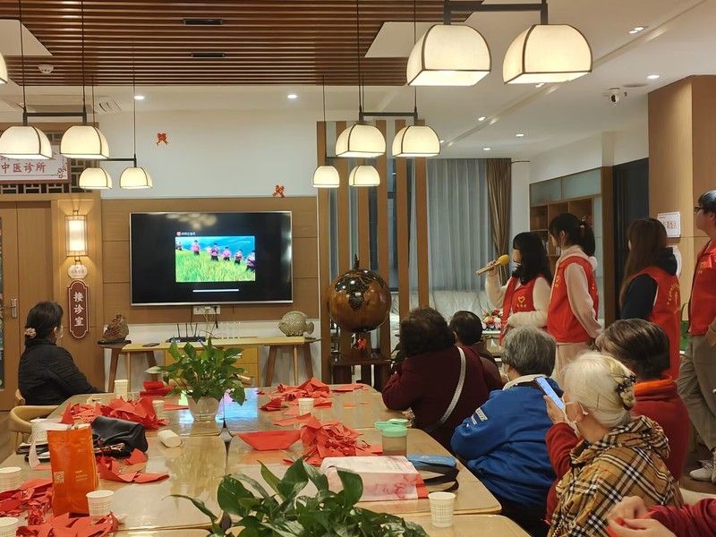 深入老人群体,红歌传递真情。最后,老人和志愿者们一同合唱《我的中国心》这首红色经典曲目。歌声慷慨激昂,唱出了人民心中对祖国的深情与自豪。活动落幕时,老人们依依不舍地与志愿者道别,表达了与志愿者们再相见的期待。