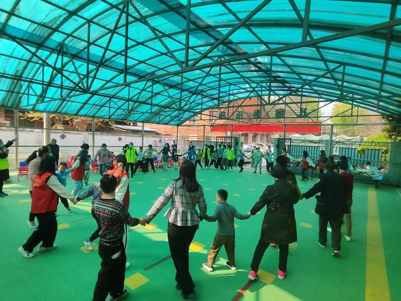 清风迎笑脸,桃花传暖意。志愿者们蹦蹦跳跳转圈走位,生动活泼地展示了舞蹈《牛仔不忙》和歌舞节目《开心西游》。唱跳俱佳的精彩表演受到了孩子们的热情欢迎。他们在台下或看的目不转睛,或手舞足蹈。掌声过后,在穿插的游戏环节中孩子们也积极举手,踊跃参与。游戏“桃花朵朵开”中,志愿者牵着孩子们的手,当老师们报出数目后,与家长和小朋友们紧抱在一起,欢笑着抱成一朵朵美丽的桃花,在和煦的春日中开得格外灿烂。