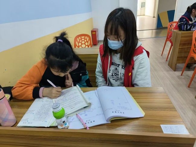 春日明媚,和风徐徐。在本次活动中,除了辅导儿童写作业、陪伴玩耍之外,志愿者们还向社区孩子分享书籍、交流心得。活动当天,志愿者们对儿童展开一对一辅导,及时解答疑惑,细心检查作业。部分儿童在志愿者的帮助下提前完成作业后,由志愿者们引导其安静地阅读书籍,利用好零碎时间提升文化素养。