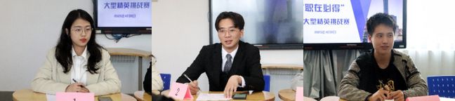 面试过程中,张钰瑶选手表现得沉着冷静;在景瑞地产的陈小风先生提出“具体的求职意愿、未来规划,在自己的经历中收获了什么、遇到了哪些挑战”等问题后,张钰瑶选手能条理清晰地对每个问题进行陈述,陈小风先生也给予她应当丰富经历的建议;在罗志涛选手的面试过程中,评委出乎意料地用英语进行面试,该选手快速调整自己、整理思路,以流畅的英语表达能力,回答评委老师提出的一系列问题;在李昕彤选手的面试过程中,评委让其围绕“领导者的作用”、“数据可视化呈现”、“ChatGPT”等话题谈谈自己的思考,最后评委也对她的回答给出相应的建议;在吴玲慧选手的面试过程中,该选手向评委自信地介绍自己在实践活动中遇到的挑战和趣事、在辩论队的心得,评委也指出其在回答“财会和金融的区别是什么”时缺少框架的问题;在黎闯的面试过程中,评委提出有关“年化10%”的专业问题,并建议他在简历中突出对自己贡献度大、更能体现自己能力的经历……经过激烈选手角逐和评委的激烈讨论后,沈吉杭、张钰瑶、罗志涛、谢晓燕、李昕彤和吴玲慧六位选手(排序不分前后)脱颖而出,进入决赛。