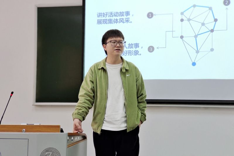 何老师首先向各位学员进行简短的自我介绍,并指出宣传工作的重要性与相关部门学习校园新闻采访写作基本规范的必要性。