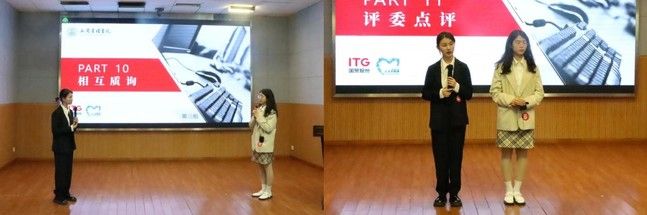 在质询环节,五号选手李昕彤针对六号选手的方案中的客户服务体系抛出问题,六号选手吴玲慧从前中后三个时期清晰系统地论述了该体系的具体措施;六号选手抓住五号选手方案中严格用户准入与降低投资门槛的矛盾点尖锐提问,五号选手通过辩证分析阐明双方并非直接矛盾。二者质询环环相扣,精彩至极。