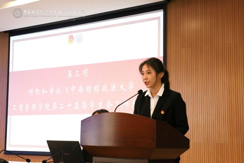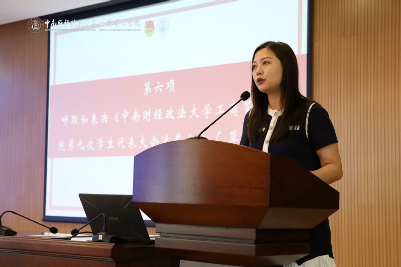 第25届学生会主席团成员谢宜铭做《7003菠菜导航网大全第二十五届学生会工作报告》。杨倩宣读《关于7003菠菜导航网大全提案工作报告》和《7003菠菜导航网大全第九次学生代表大会选举总监票人、监票人、计票人建议名单》,全体学生代表表决一致通过。
