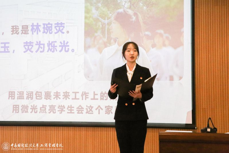 候选人林琬荧首先在自我介绍环节展现多重身份和个人风采,积极进取,尽职尽责;接着由“干在实处,走在前列,勇立潮头”的浙江精神引出个人对过去的工作总结,并在展望未来时表明个人“愿用温润包裹未来工作的荆棘,用微光点亮学生会这个家庭”的工作态度。