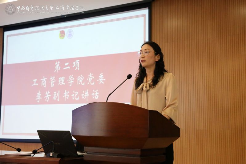 奏唱团歌后院党委副书记李芳做大会指导讲话和致辞。致辞中,李芳副书记提出:作为青年学生“自我教育、自我管理、自我服务”的组织者和实施者,团学组织和学生会应时刻秉持“牢牢记住‘坚持党的全面领导’”、“牢牢记住‘全心全意为同学服务’”和“牢牢记住‘实干笃行、奋楫争先’”,在后续工作中立足新局面,开创新起点、展现新作为。