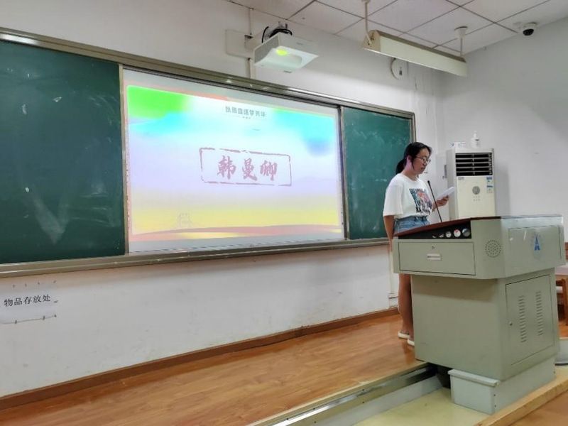 杨佳妮同学和杨爱荧同学朗诵《青春中国》。《青春中国》是欧震所著爱国诗歌,诗歌从鸦片战争的国耻说起,说到五四的爱国青年觉醒,再到今天新中国的强大。字里行间热血澎湃着对祖国的热爱。两位同学通过抑扬顿挫的语言充分演绎了这首诗歌表达的情感。台下的听众们深受感染,全都沉浸在两位同学的朗诵声中。