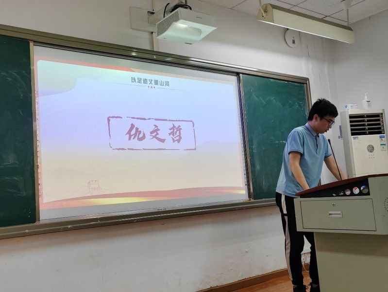 接下来,仇文哲同学向大家分享了五一参观辛亥革命纪念馆的经历和感悟。当看到陈列在展馆的革命先辈们的照片,他仿佛透过时空,和先辈们展开了一场无声的对话。“我,我们今天是以怎样的姿态和身份去面对这些先辈们?我们和他们,和这些历史或许并不遥远。历史的车轮滚滚向前,过往未尽,未来将至,我们青年人肩负着这样的责任,只有紧握当下,团结一致向前。最后,把中山先生的话送给大家“革命尚来成功,同志仍需努力”。