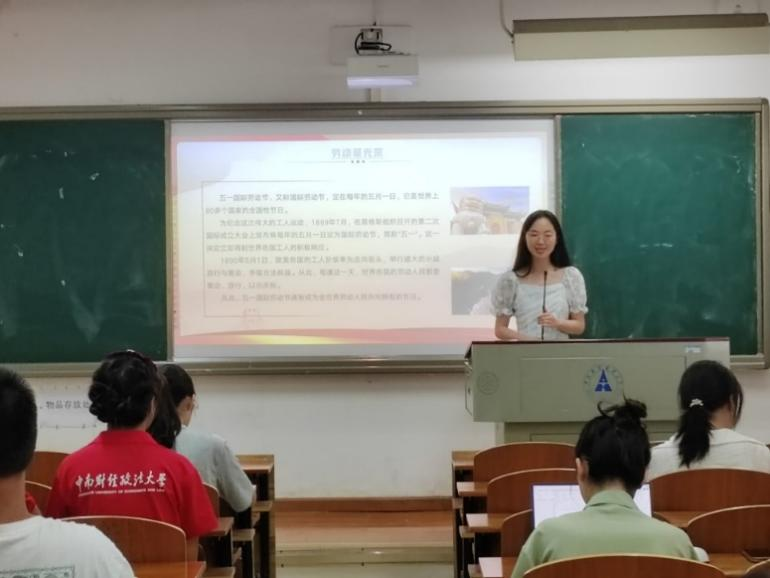 首先,黎铧珊同学向大家介绍了五一劳动节和五四青年节的历史来源。1889年7月,由弗里德里希·恩格斯领导的第二国际在巴黎举行代表大会。会议通过决议,规定1890年5月1日国际劳动者举行游行,并决定把5月1日这一天定为国际劳动节。五四青年节,是为纪念1919年5月4日爆发的五四运动而设立的。五四爱国运动是一次彻底的反对帝国主义和封建主义的爱国运动,也是中国新民主主义革命的开始。