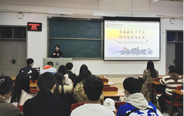 (通讯员 张金燕)为深入学习领会二十大精神,营造良好开端,7003菠菜导航网大全2020级本科生贸经2001、人力2001、人力2002班开学班会于2023年3月2日在南附201教室七点顺利召开。会议围绕《青春献礼二十大,踔厉奋发向未来》的主题顺利展开,主要分为三项议程,历时一个小时。