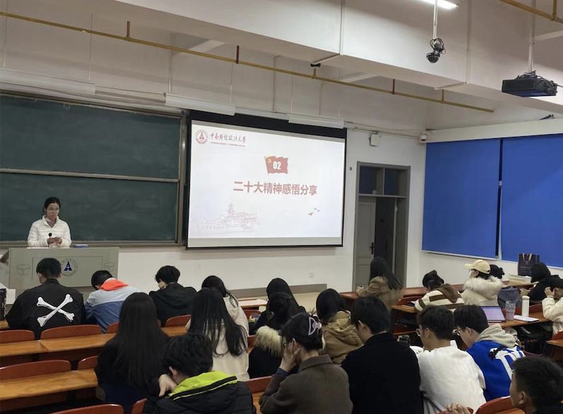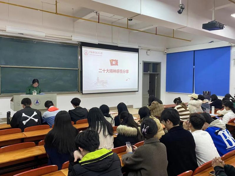然后三个班的积极分子和优秀同学进行了二十大感悟分享。人力1班许钰婷同学在学习二十大精神时,感受到时代青年的重大使命感和责任感;人力1班袁语瞳同学深入学习二十大精神,坚定跟党走的理想信念;人力2班团支书张金燕同志结合自身实际,谈到学习二十大后带来的思想和生活的变化;人力2班苏清梅同学重点提到学习二十大后自身进行了更多相关理论的学习;贸经1班张中娟同学就理论学习方面不断深入,认识深刻;贸经1班党员吴意同志时刻谨记自身党员荣誉身份,不断学习理论知识同时结合自身实际,为全体同学做一个榜样。6名同学积极表达自身对于二十大的感悟,不同角度不同程度地表达对于党的二十大的时刻关注和学习领悟。
