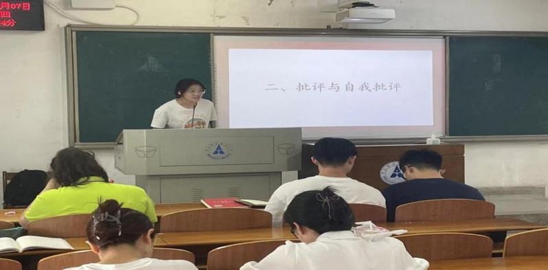 2020级辅导员范梦宇老师就同学们在自我批评中呈现的共性问题进行了汇总并提出了相应的解决方案。范老师指出要系统性地建立理论框架,通过有条理地学习,将零散的知识点整合起来,形成一个完整的思考体系。同时,要不断扩充理论内容,不仅限于课本和教材,还要积极关注时事、国内外的动态,将学习与实际情况结合起来,深入领悟理论的重要作用。