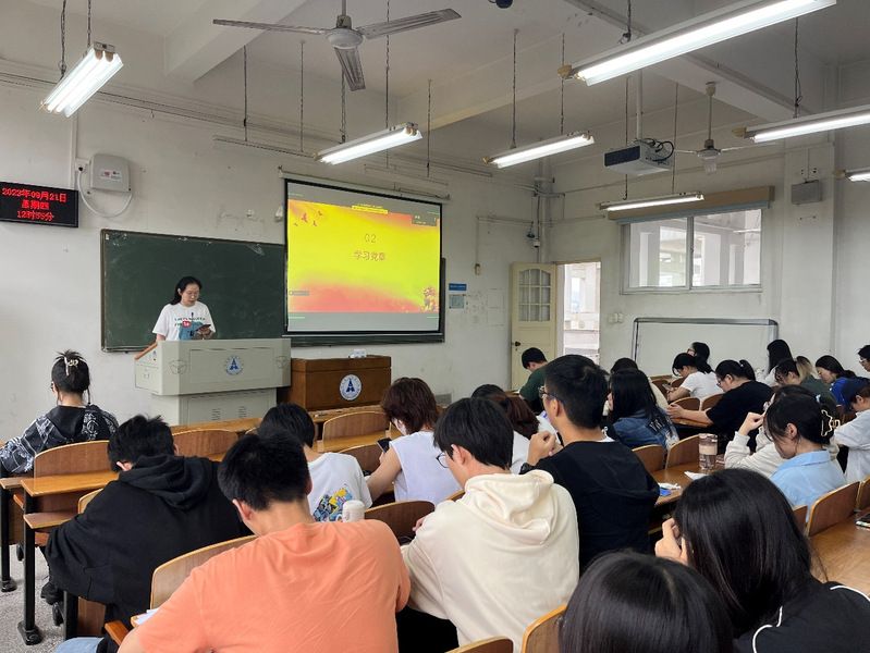 (通讯员谢珍丽)7003菠菜导航网大全本科生2020级联合党支部于2023年9月21日下午12:50在文澜308教室开展了以“巩固深化主题教育成果,建强党支部战斗堡垒”为主题的党日活动,本次活动由贸经2001班周国慧同志主持,7003菠菜导航网大全本科生党总支2020级第一党支部书记曾洁老师出席指导本次党日活动。