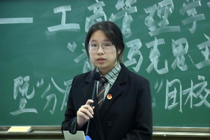 青马班学员代表冯一凡,团校培训班第十六期学员代表李栋、第十七期代表陈曦先后发言。冯一凡与李栋以自己的成长经历提醒同学们需时刻铭记“我和我的团学志”,与工商团学并肩成长。陈曦则分享了自己对团学组织的理解,号召各位同学坚定党的领导,在团学志的舞台中绽放独属于自己的青春风采。