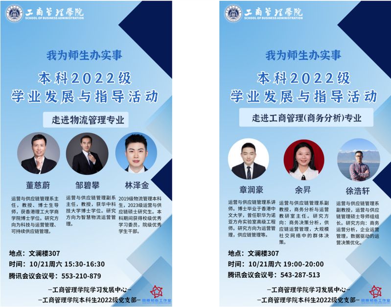 随后,运营与供应链管理系副教授余昇老师、运营与供应链管理系副教授徐浩轩老师和章润豪老师就同学们提出的课程内容、课程学习、研学深造等方面的问题做出详细解答,让同学们对专业本身有了更好的了解。