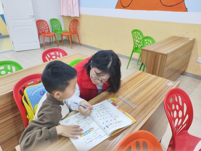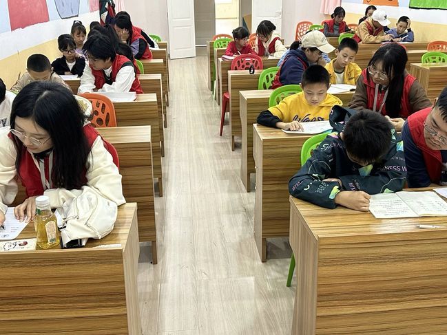 志愿显温情,温情暖你我。清晨时分,教室早已被认真的小身影们填满。孩子们纷纷拿出作业本,或执笔沉思,或端正誊写,或细致运算。志愿者们则在一旁耐心陪伴,在孩子们对于知识点存有疑惑时,及时用简明易懂的语言为他们答疑解惑。一份份完成的作业,一次次豁然开朗的点头,是孩子们汲取到知识的证明,更是温暖在传递的象征。