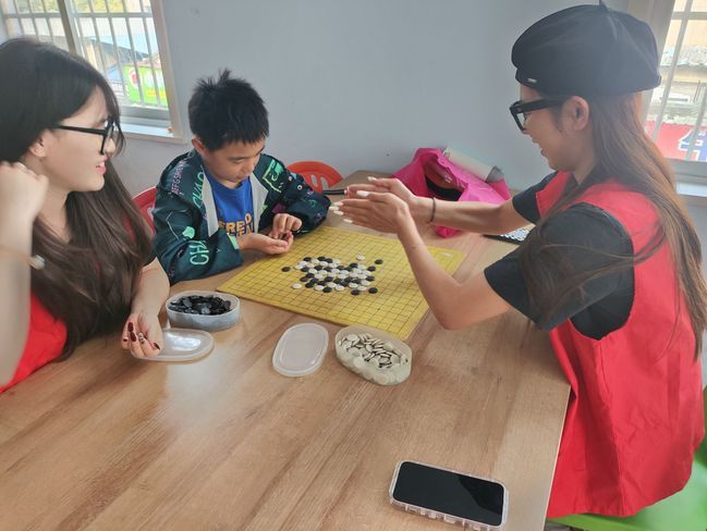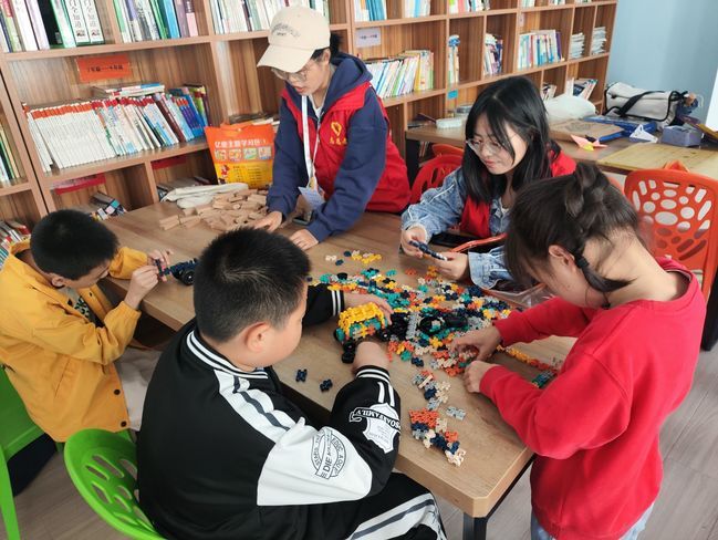 活动展朝气,志愿正青春。除了辅导功课,与儿童一起玩耍也是必不可少的陪伴。活动室中,孩子们仔细挑选着自己喜欢的棋类和积木类玩具,很快便沉浸其中。他们有的专心致志地翻阅着《世界十大未解之谜》,读得津津有味;有的与志愿者们比拼象棋、五子棋,下得难解难分;还有的两两一组进行乒乓球对战,打得不分伯仲。孩子们灿烂温暖的笑脸如同向阳的花盛开在志愿者的心底,为他们驱散疲惫,注入温馨的暖流。只可惜时间飞逝,那一盘还未决出胜负的五子棋,那一座还没搭完的积木城堡,那一声依依不舍说出的道别,都是志愿者们和孩子们下次再见的约定,相信在11月份暖阳志愿服务队也会继续带领志愿者们向金鹤园的儿童们传递太阳般的温暖。