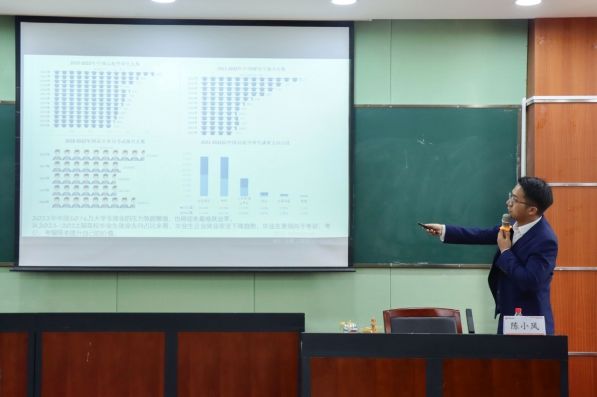 讲座伊始,陈小风先生为我们展示了大学生职业生涯规划调查报告的核心观点,详细分析了目前大学生对职业生涯规划的看法及大学毕业生的就业情况,向同学们讲解我们当前所面临的就业新形势。