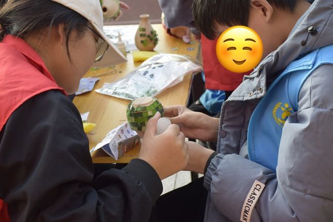 套圈首义欢颜绽,拾叶思园童颜悦。冬日里阳光明媚的首义广场上,小朋友们有序地排列成行,开启趣味横生的套圈活动。在志愿者的引领下,只见彩色圆圈在天空中划过一道道美丽的弧线,而后巧妙地落在目标物上,孩童们脸上洋溢着自豪,获得的每一张贴纸都是他们胜利的勋章,喜悦在他们纯真的笑颜中绽放。在秋意盎然的思园,孩子们如同欢快的精灵,收集着季节的斑斓,为随后的手工活动精心挑选着每一片落叶。志愿者们陪伴其左右,一同感受着中南大秋天的意境。思园行结束后,孩子们一手拉着志愿者,一手拿着树叶,满心欢喜地前往南运场进行树叶贴画和花瓶装饰活动。