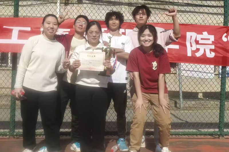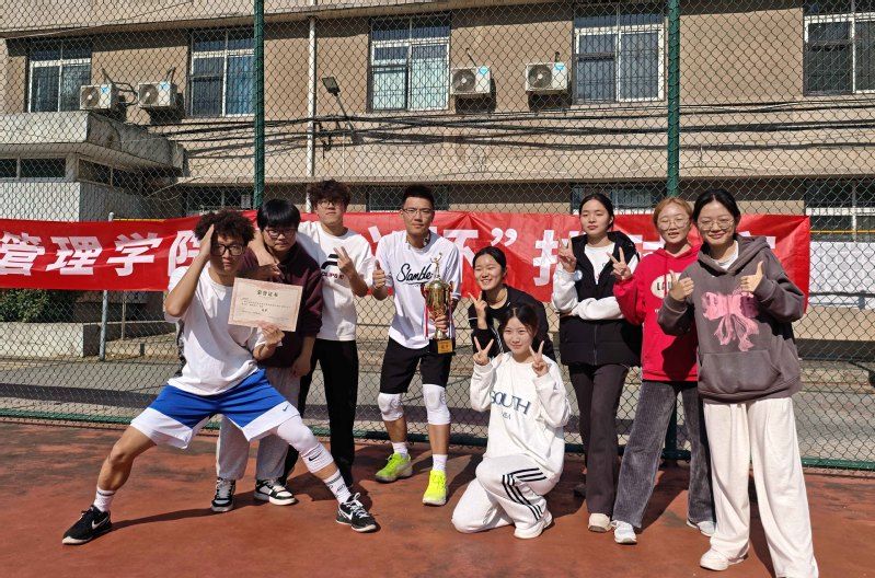 与此同时,三号场地正上演着经贸2402班与工商2407班之间激烈的冠亚对决。首局比赛中,经贸2402班凭借出色的手感,利用发球优势迅速将比分扩大至11:2。面对落后,工商2407班展现出极高的团队精神,通过一连串精彩的防守反击,逐步将比分差距缩小至20:18。然而,由于手感欠佳及比分压力,工商2407班失误增多,最终经贸2402班先拔头筹,赢得首局。进入第二局,受到首局失利的影响,工商2407班的状态依旧未能完全调整过来,而经贸2402班则再次依靠发球攻势,迅速取得15:6的比分领先。然而,经贸2402班此时出现了松懈,自身失误频发。工商2407班抓住这一机会,全队齐心协力,顽强地将比分追至16:18。关键时刻,经贸2402班迅速调整状态,通过几波犀利的进攻,成功锁定胜局,最终夺得本次比赛的冠军。